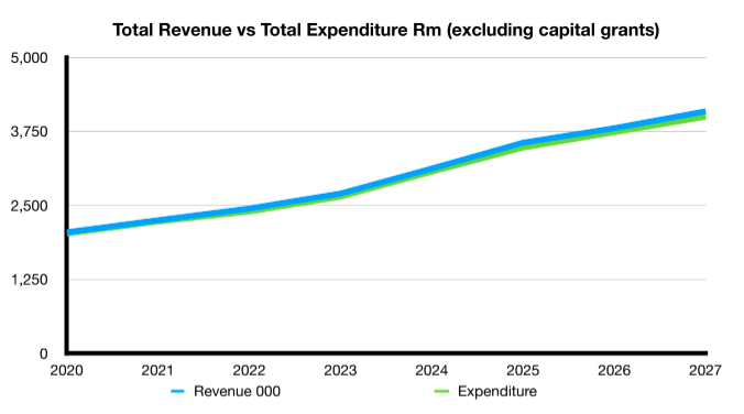 The graphs that follow reflect the trends over the past 4 years and 4 budget years in ratios based on population and household numbers as a reflection of municipal efficiencies. The increase in municipal income (excluding capex grants) was approximately 13% p.a. over an 8-year horizon, and associated expenditure was approximately 12% p.a., versus an inflation rate of 3.3% to 6% over the same period.