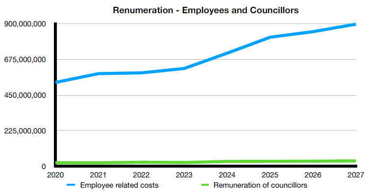 The following graphs also indicate continued increases in employee and councillors expenditure / renumeration, which is largely determined by negotiations at national level, but deeper analysis per department will be undertaken.